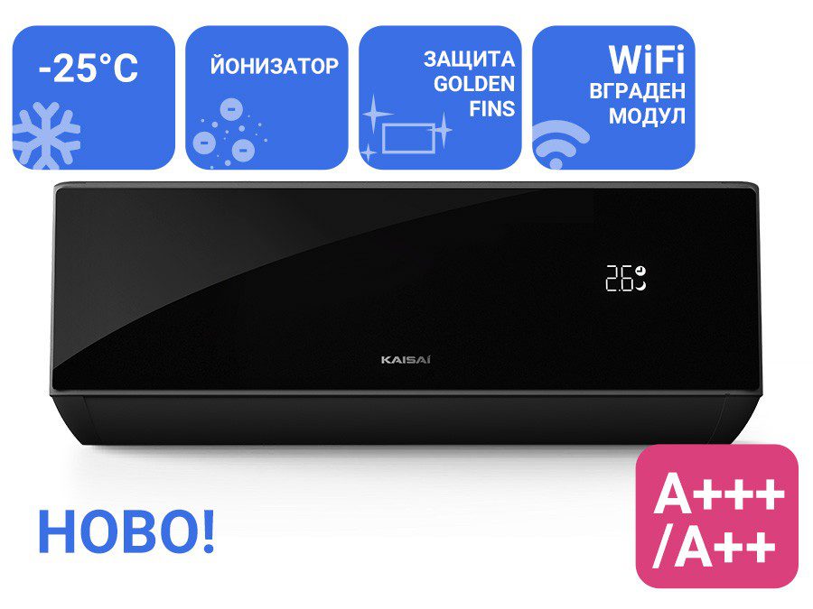 Инверторен стенен климатик KAISAI BLACK PRO HEAT + KRB-09TLHI / KRWB-09TLHO