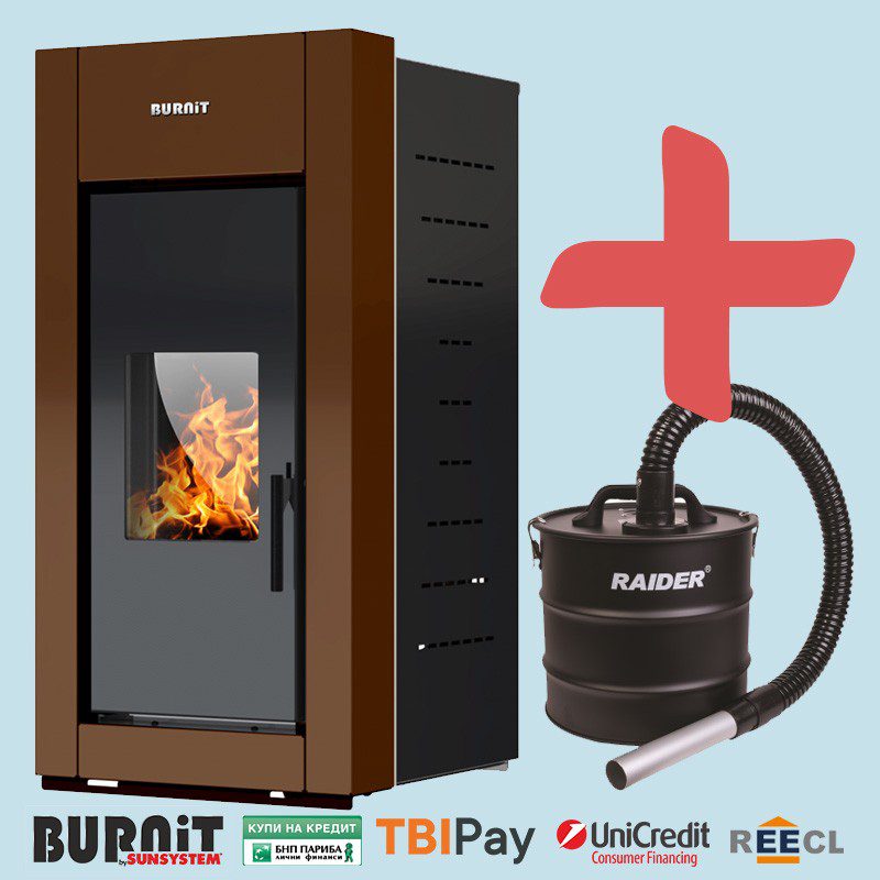 Намери нашия офис на Адрес: гр. Пловдив , ул. Македония 42 (ВИЖ на КАРТАТА) Само сега при поръчка на пелетна камина получавате подарък - Прахосмукачка за пепелПелетнa каминa BURNiT Calor 13kW с водна риза