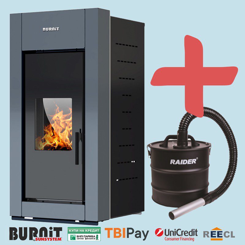 Намери нашия офис на Адрес: гр. Пловдив , ул. Македония 42 (ВИЖ на КАРТАТА) Само сега при поръчка на пелетна камина получавате подарък - Прахосмукачка за пепелПелетнa каминa BURNiT Vision 13 kW с водна риза