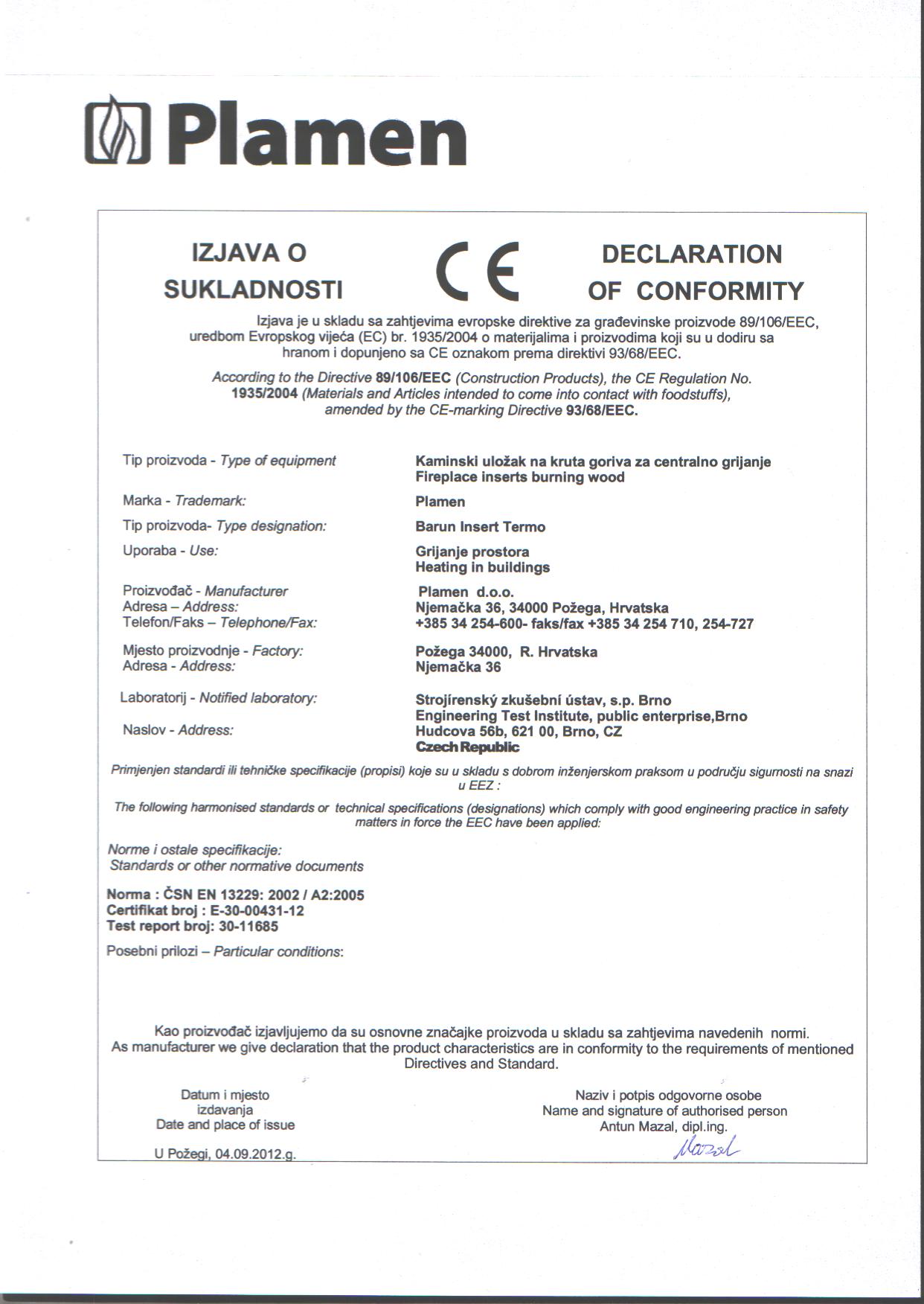 - Стандарт EN 13240